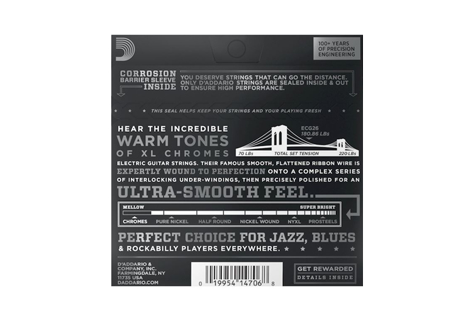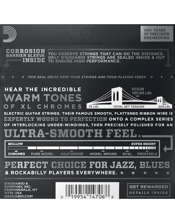 Οι χορδές ηλεκτρικής κιθάρας D'Addario XL Chromes δίνουν στον ήχο σας στρογγυλά και γεμάτα μπάσα χωρίς να χάνεται η ζεστασιά.