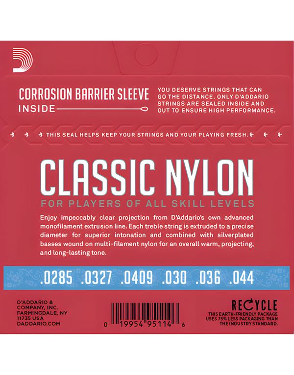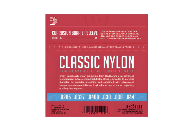 Οι χορδές D'Addario Classic Nylon Student έχουν σχεδιαστεί ειδικά για αρχάριους κλασικούς κιθαρίστες. Ο παραδοσιακός συνδυασμός επάργυρου χαλκού που τυλίγεται πάνω από νάιλον στις μπάσες και διαφανείς νάιλον πρίμες χορδές, αποδίδουν μια απαλή ισορροπία στον ήχο.