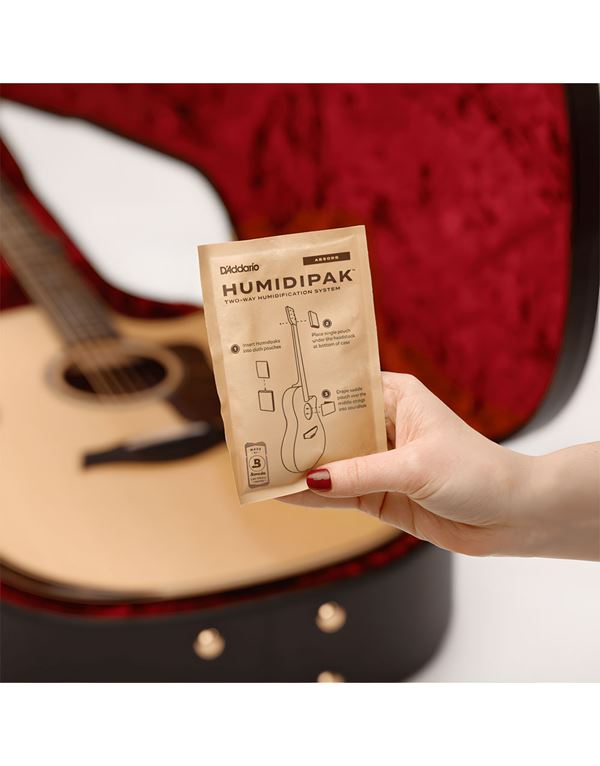 Η προστασία και η διατήρηση του οργάνου σας σε άριστη κατάσταση δεν ήταν ποτέ πιο εύκολη, χάρη στο D’Addario Humidipak. Χρησιμοποιώντας την τεχνολογία διπλής κατεύθυνσης ελέγχου υγρασίας της Boveda, το Humidipak προσθέτει ή αφαιρεί αυτόματα υγρασία για να διατηρήσει το ιδανικό επίπεδο υγρασίας 45%-50% RH μέσα στη θήκη του οργάνου σας, αφαιρώντας κάθε αβεβαιότητα και άγχος σχετικά με τη σωστή υγρασία του οργάνου.