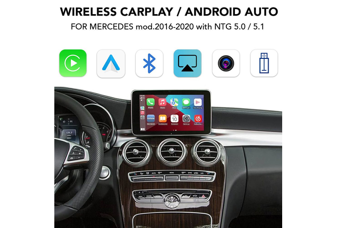 Συμβατό με εργοστασιακό σύστημα NTG 5.0 / 5.1 και οθόνη 7" - 8" - 8.4" & 12.3" (S Class), για αυτοκίνητα Mercedes 2014-2018, διατηρώντας όλες τις εργοστασιακές ενδείξεις του ηχοσυστήματος στην οθόνη του αυτοκινήτου με πλήρη ενσωμάτωση των εργοστασιακών χειριστήριων του αυτοκινήτου.