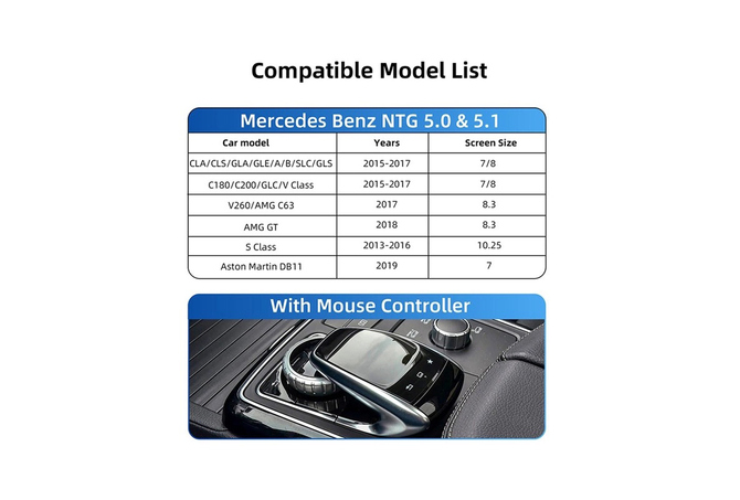 Upgrade Your In-Car Experience: Compatible with Mercedes-Benz NTG 5.0/5.1 Series (2013 - 2019) & Aston Martin DB11 (2019), Featuring Mouse Controller for Easy Operation |