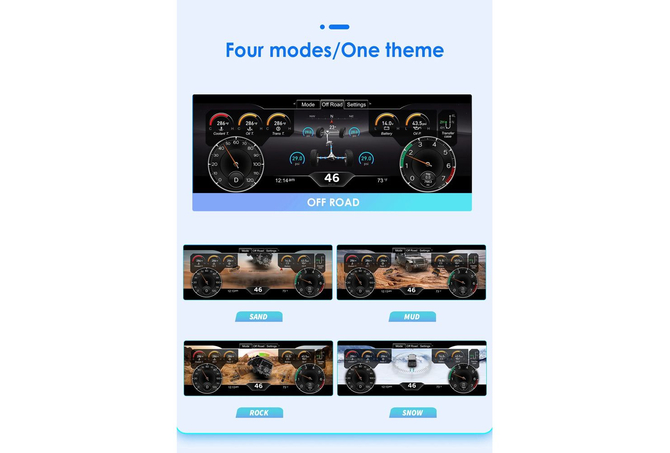 - 5 Modes: Off road - Sand - Mud - Rock - Snow