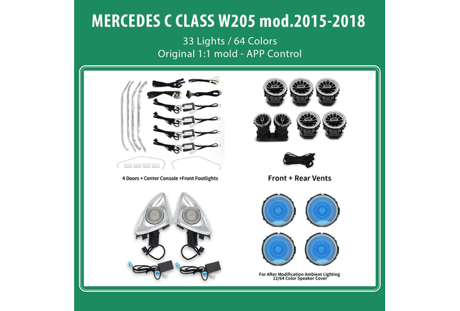 Αρχική/CAR MARINE AUDIO/AMBIENT LIGHTS/DIQ AMBIENT 8161 DCL (FK) - BENZ C (W205) (Digital iQ Ambient Light for Mercedes C (W205) mod. 2015-2018 with 33 Lights - FULLKIT)