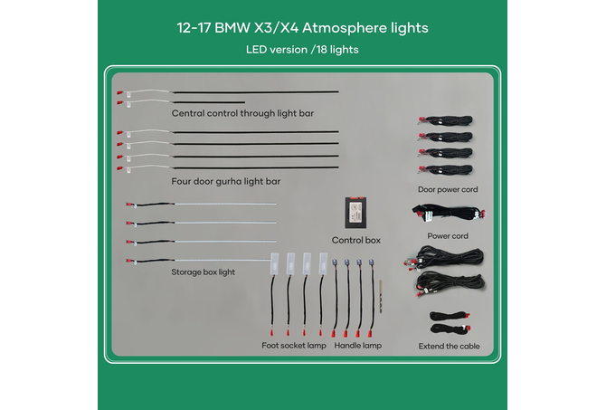 DIQ AMBIENT BMW X3 (F25) (Digital iQ Ambient Light for BMW X3 (F25) / X4 (F26) mod. 2011-2018 with 17 Lights, 11 Colours)