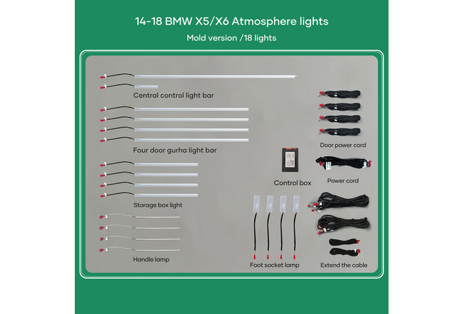 DIQ AMBIENT BMW X5-X6 (F15-F16) (Digital iQ Ambient Light for BMW X5 (F15) / X6 (F16) mod. 2014-2018 with 18 Lights, 11 Colours)