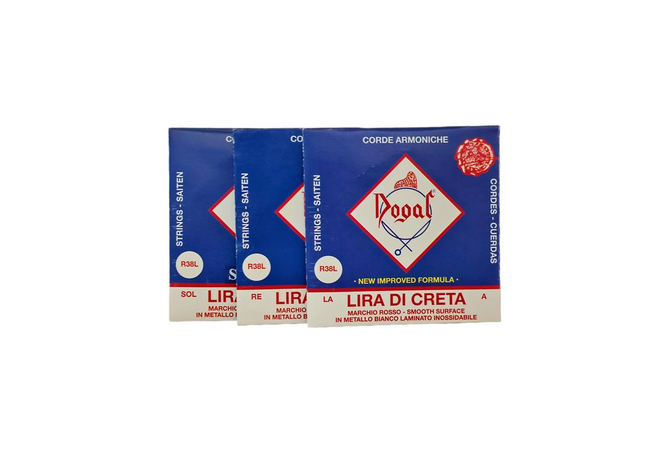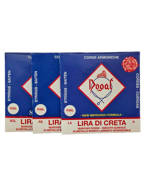 Βασισμένο στο διάσημο σετ χορδών για κρητική λύρα Dogal R38L, διαθέτει χορδή Σολ με μεγαλύτερη διάμετρο από εκείνη που βρίσκουμε στο στάνταρ σετ, Dogal R38L, παρέχοντας μεγαλύτερο όγκο πιο πλούσιο ηχόχρωμα στον ήχο της Σολ.