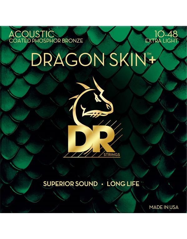 Οι χορδές Dragon Skin+™ έχουν τεράστιο ήχο , παίζονται εύκολα και έχουν εξαιρετική αντοχή. Το Dragon Skin+ αναβαθμίζει τόσο τον πυρήνα όσο και την περιέλιξη για να έχουν εξαιρετικά μουσικό, ισορροπημένο και δυνατό αποτέλεσμα. Το Accurate Core Technology™ δημιουργεί αυλακώσεις στον πυρήνα για τη βάση του σύρματος περιτύλιξης, επιτρέποντας στις χορδές να ηχούν στο μέγιστο των δυνατοτήτων τους.