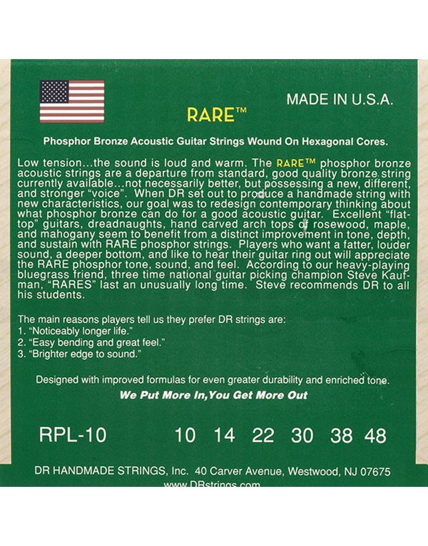 Οι χορδές ακουστικής κιθάρας RARE™ χρησιμοποιούν περιέλιξη από Phosphor Bronze πάνω σε έναν εξαγωνικό πυρήνα από χάλυβα υψηλής περιεκτικότητας σε άνθρακα. Το αποτέλεσμα είναι ένας ζεστός, φωτεινός και ισορροπημένος ήχος με έναν συνολικά πιο πυκνό και δυνατότερο όγκο bottom . Οι ακουστικές κιθάρες όλων των τύπων έχουν σαφή βελτίωση στον ήχο, το βάθος και το sustain.