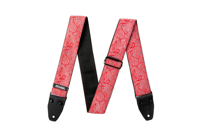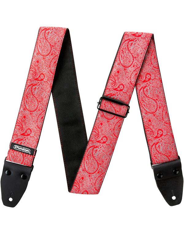 Ζώνη κιθάρας - μπάσου DUNLOP D6711 Jacquard Paisley Red κατασκευασμένη από ανθεκτικό ύφασμα Jacquard υψηλής ποιότητας, με γνήσια δερμάτινα άκρα, δοκιμασμένη για να αντέχει φορτίο έως 90Kg.