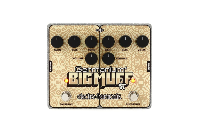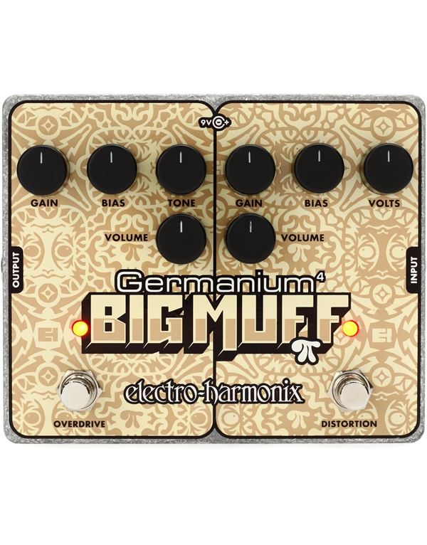Συνδυάζοντας τέσσερα κλασικά τρανζίστορ γερμανίου, το EHX Germanium 4 Big Muff Pi είναι το αποτέλεσμα ενός εστιασμένου μοντέρνου σχεδιασμού γεμάτο με την αναλογική κληρονομιά EHX. Ένα ανεξάρτητο overdrive και παραμόρφωση έχει το καθένα τα δικά του σετ δύο τρανζίστορ γερμανίου καθώς και ανεξάρτητα χειριστήρια. Η δυνατότητα stack και χρήσης του overdrive και του distortion μαζί παρέχει την ισχύ ενός κυκλώματος τεσσάρων τρανζίστορ γερμανίου με απόλυτη ευελιξία ελέγχου.