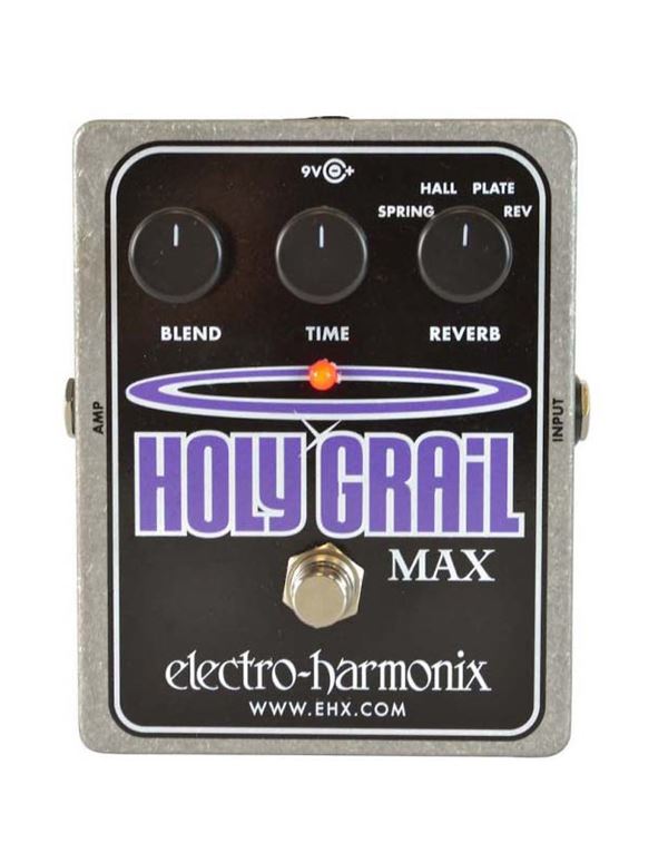 Το EHX Holy Grail Max, ένα εύχρηστο και ηχητικά ανώτερο, πετάλι reverb. Το Holy Grail Max προσφέρει τέσσερις τύπους reverb ποιότητας στούντιο: SPRING, HALL, PLATE και REVERSE, όλα σχεδιασμένα για τον απαιτητικό κιθαρίστα, αλλά και υπέροχα με άλλα όργανα στη σκηνή ή στο στούντιο. Περιλαμβάνεται ένα αναλογικό wet/dry control που παρέχει μια σταθερή καμπύλη έντασης καθώς περιστρέφετε το κουμπί BLEND από εντελώς dry σε πλήρως wet, ενώ ταυτόχρονα διατηρείτε το dry αναλογικό σήμα μέσω του πεταλιού.