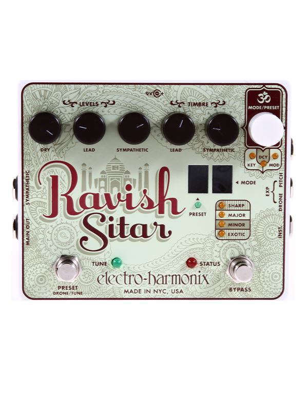 Πολύ λίγα όργανα προσφέρουν τόση αρμονική και δυναμική ευελιξία όσο ένα σιτάρ. Η Electro-Harmonix έχει εξορθολογίσει την ουσία του σιτάρ σε ένα συμπαγές πετάλι που προσφέρει πολυφωνική φωνή και ρυθμιζόμενα sympathetic string drones που αντιδρούν δυναμικά στο παίξιμό σας. Με τον εξομοιωτή EHX Ravish Sitar, μπορείτε να δημιουργήσετε τις δικές σας προσαρμοσμένες κλίμακες για τις συμπαθητικές χορδές ενώ ορίζετε το decay time για την κύρια φωνή.