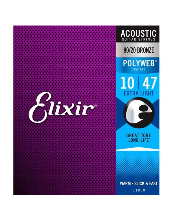 Οι χορδές Elixir® Acoustic 80/20 Bronze με επίστρωση POLYWEB® προσφέρουν έναν ζεστό, «παιγμένο» τόνο μαζί με εκτεταμένη διάρκεια ζωής του ήχου που οι παίκτες περιμένουν από την Elixir.