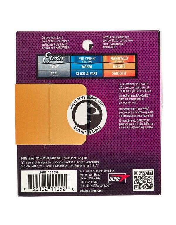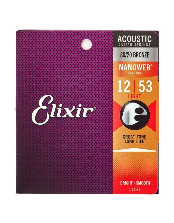 Οι χορδές ακουστικής κιθάρας Elixir® Acoustic 80/20 Bronze με επίστρωση NANOWEB αποδίδουν έναν φωτεινό, ζωντανό τόνο σε συνδυασμό με εκτεταμένη διάρκεια ζωής του ήχου που οι παίκτες περιμένουν από την Elixir.