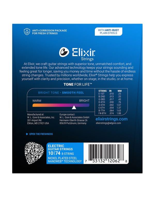 Οι χορδές ηλεκτρικής κιθάρας Elixir® Electric Nickel Plated Steel με επίστρωση NANOWEB® προσφέρουν την παρουσία, τη διάτρηση και την προσωπικότητα των παραδοσιακών χορδών ηλεκτρικής κιθάρας αλλά με εκτεταμένη διάρκεια ζωής.