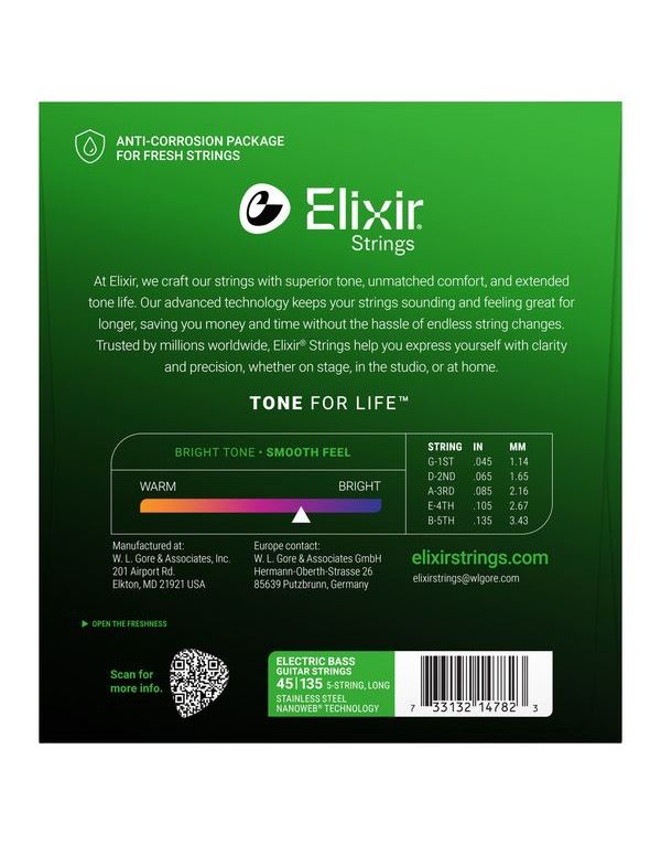 Οι χορδές ηλεκτρικού μπάσου Elixir® Nickel Plated Steel με επίστρωση NANOWEB® προσφέρουν έναν πλούσιο, στρογγυλεμένο τόνο με μεγαλύτερη διαύγεια και πιο δυνατή παρουσία στη μεσαίες συχνότητες.