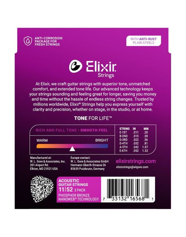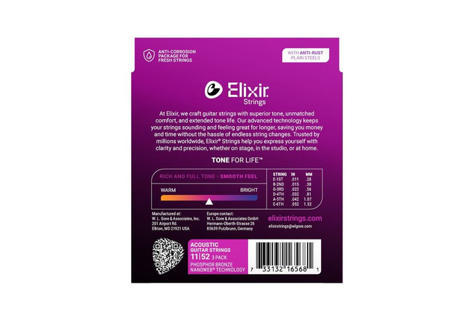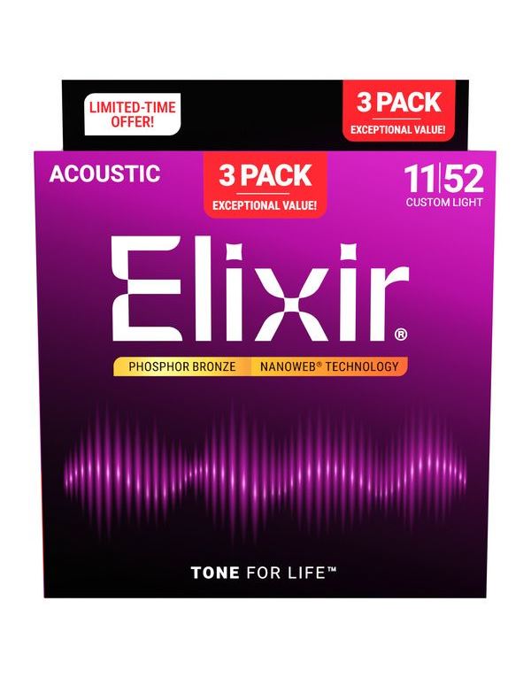 Οι χορδές ακουστικής κιθάρας Elixir® Strings Acoustic Phosphor Bronze με επίστρωση NANOWEB® προσφέρουν την ξεχωριστή ζεστασιά και λάμψη του phosphor bronze σε συνδυασμό με εκτεταμένη διάρκεια ζωής του τόνου.