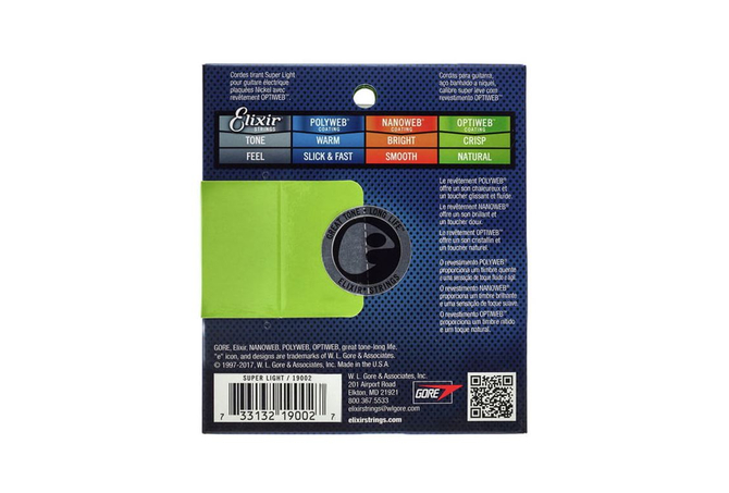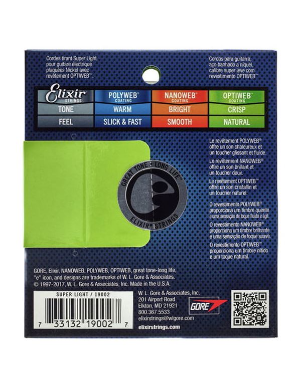 Οι χορδές ηλεκτρικής κιθάρας Elixir® Electric Nickel Plated Steel με επίστρωση OPTIWEB® σας δίνουν την απόδοση μιας φυσικής χορδής — αυτόν τον καθαρό τόνο, τη φυσική αίσθηση και το «playable grip» που γνωρίζετε και αγαπάτε — χωρίς να θυσιάζετε τη μακροχρόνια διάρκεια ζωής των χορδών Elixir.