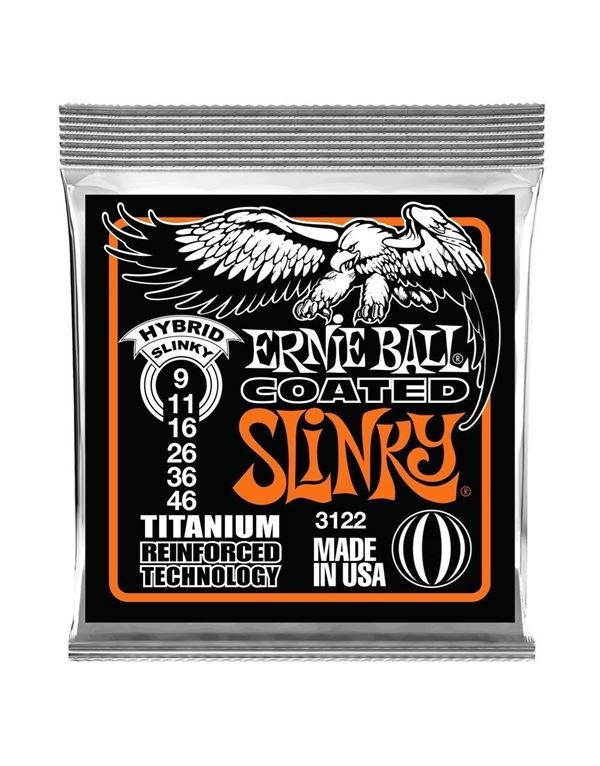 Οι χορδές ηλεκτρικής κιθάρας με επίστρωση Ernie Ball Slinky συνδυάζουν τις τελευταίες τεχνολογικές εξελίξεις στην κατασκευή χορδών. Όλες οι wound χορδές αντιμετωπίζονται με πρωτοποριακή νανοτεχνολογία που απωθεί την ανεπιθύμητη υγρασία που επηρεάζει αρνητικά τον τόνο σας. Εκτός από την επεξεργασία των wounded χορδών, κάθε απλή (plain) χορδή διαθέτει μια πατενταρισμένη ενισχυτική περιέλιξη από σύρμα τιτανίου. Η δύναμη και η ανθεκτικότητα του τιτανίου αποτρέπει το σπάσιμο της χορδής, την ολίσθηση της χορδής και έχει αποδειχθεί ότι διατηρεί τις χορδές της κιθάρας σας καλύτερα κουρδισμένες από τις συμβατικές απλές χορδές. Οι χορδές κιθάρας Ernie Ball Slinky Coated διατηρούν την αίσθηση και τον ήχο των χορδών χωρίς επίστρωση.