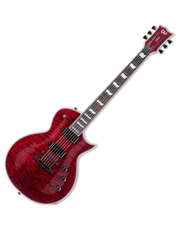 Αυτό το πρόσφατα αναβαθμισμένο μοντέλο EC-1000 εντυπωσιάζει με την εμφάνισή του, διαθέτοντας καπάκι quilted maple σε φινίρισμα See Thru Black Cherry και κομψές λεπτομέρειες όπως multi-ply binding σε σώμα και headstock, ενώ το black hardware συμπληρώνει την premium αισθητική της κιθάρας.
