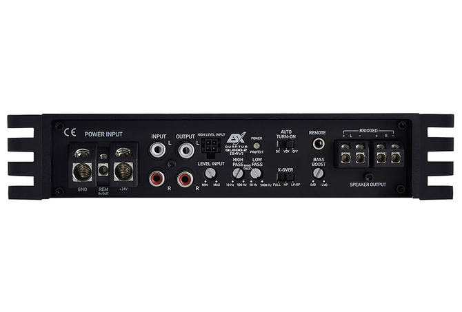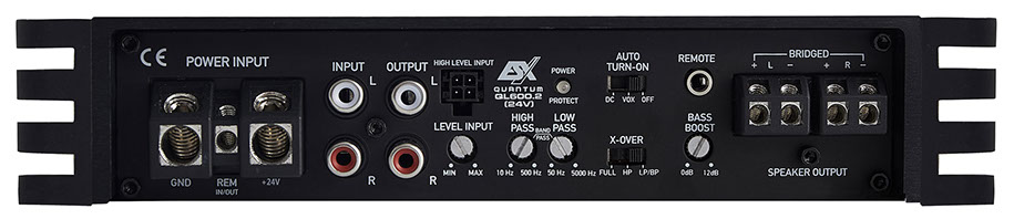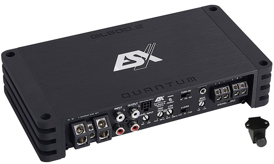 The brand new QUANTUM QL amplifiers in the ESX Portfolio are technically the small siblings of the QE models. Ideally, they can be used where the installation space is very tight. They are also emission-free and, like the large QE models, have the finest Class-D technology on board, which leaves nothing to be desired in terms of performance, sound quality and setting options. The optical appearance and dimensions the QL models share with the XE-DSP amps and the X-DSP processor, so that the combination of these devices enable high-quality DSP systems with a lot of power. The QUANTUM QL models are also coming with the space-saving remote control. The 24V versions can be operated in trucks and coaches with a 24 volt electrical system.