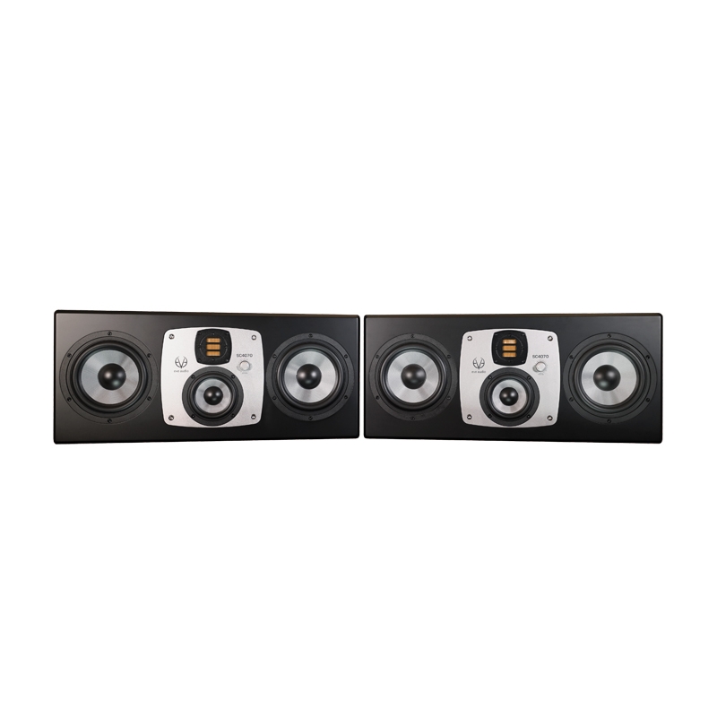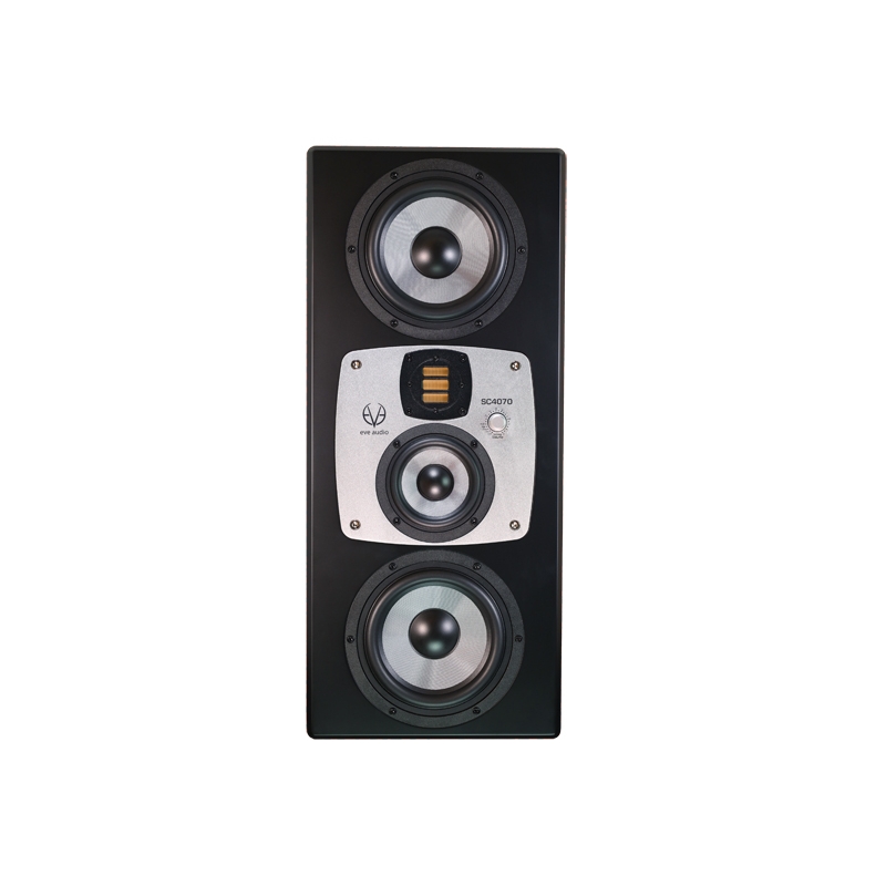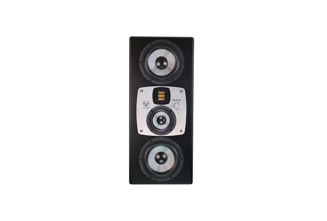 Ένα νέο επίπεδο ισορροπίας ήχου, ακρίβειας και εκπληκτικής αναπαραγωγής των χαμηλών συχνοτήτων, είναι αυτό που προσφέρει το SC4070 με απόλυτη ευκολία. Το αυτοενισχυόμενο ηχείο studio monitor SC4070 αντικαθιστά το SC407, αλλά συνεχίζει να βασίζεται στον προκάτοχό του, επαναπροσδιορίζοντας τα αναμενόμενα επίπεδα ηχητικής απόδοσης και ακρίβειας για αυτό το πραγματικά εξαιρετικό σύστημα studio monitor χωρίς συμβιβασμούς. Το SC4070 διαθέτει ένα προηγμένο τμήμα tweeter/mid range και ενισχύει την ικανότητα αναπαραγωγής χαμηλών συχνοτήτων με δύο γούφερ 6,5" συνδεδεμένα σε μια πολύ ισχυρή συστοιχία ενισχυτών. Τα διπλά γούφερ επιτρέπουν τη μείωση της παραμόρφωσης ακόμη και σε υψηλό SPL και προσφέρουν μια απίστευτη σφιχτή και ομοιογενή αναπαραγωγή μπάσων και πολύ γραμμική συνολική απόκριση. Αυτό το studio monitor 4 δρόμων, είναι συμμετρικά σχεδιασμένο. Η εντυπωσιακή κεντρική και τεράστια ασημένια πλάκα αλουμινίου είναι κάτι περισσότερο από ένα ελκυστικό χαρακτηριστικό του σχεδιασμού. Δεν στεγάζει μόνο το μεσαίο woofer και το tweeter AMT, αλλά περιστρέφεται για να κάνει το ηχείο εξίσου κατάλληλο για κάθετη ή οριζόντια τοποθέτηση. Τα φίλτρα προσαρμογής δωματίου και ο έλεγχος έντασης είναι προσβάσιμα μέσω του κουμπιού SMART με δακτύλιο LED για ένδειξη όλων των ρυθμίσεων με απόλυτη ακρίβεια. Ένα εξελιγμένο κουτί ολοκληρώνει την κομψή σχεδίαση. Η λοξή και εξαιρετικά άκαμπτη μπροστινή πλάκα μειώνει τους ανεπιθύμητους συντονισμούς και τη διάθλαση. Το studio monitor 4 δρόμων SC4070 διαθέτει δύο γούφερ SilverCone 6,5" με ειδικά κατασκευασμένο πηνίο φωνής 1,5" για να επεκτείνει την απόκριση συχνότητας μπάσων στα 32Hz. Και τα δύο γούφερ λειτουργούν ταυτόχρονα έως και 280Hz. Μια ειδικά αναπτυγμένη μονάδα midrange σειράς SilverCone 4" προσφέρει σε αυτά τα ηχεία μεγαλύτερη γραμμική εκδρομή καθώς και καθαρή και ακριβή μεσαία γκάμα. Τα μπάσα και τα μεσαία γούφερ στο SC4070 διαθέτουν το πολύ χαμηλής παραμόρφωσης σύστημα μαγνητικού καλύμματος χαλκού. Ο συνδυασμός του μοναδικού επικαλυμμένου με ίνες υάλου διαφράγματος και μιας πολύ σκληρής αλλά ελαφριάς κυψελωτής δομής αναπαράγει τον ήχο με εντυπωσιακή λεπτομέρεια και καθαρότητα. Ο μετασχηματιστής Air Motion AMT RS3.1 (πατέντα της EVE Audio) ολοκληρώνει το SC4070. Ο πυρήνας αυτών των tweeter AMT είναι μια διπλωμένη μεμβράνη που λειτουργεί σε ένα ισχυρό μαγνητικό πεδίο ενός μεγάλου μαγνήτη νεοδυμίου. Λόγω αλλαγών στο σχεδιασμό, όπως νέα υλικά, βελτιωμένη κατασκευή εσωτερικής απόσβεσης και πιο αποτελεσματικό πεδίο μαγνήτη, το SC4070 παρέχει υψηλότερο επίπεδο ηχητικής πίεσης, χωρίς ουσιαστικά καμία παραμόρφωση, ακόμη και σε υψηλά επίπεδα εξόδου. Αυτό το AMT RS3.1 μπορεί να επιτύχει την αναπαραγωγή απόκρισης συχνότητας έως 40 kHz.Κάθε SC4070 είναι εξοπλισμένο με τον δικό του ενισχυτή PWM για συνολική βραχυπρόθεσμη ισχύ εξόδου 1000 W. Με μέγιστο επίπεδο εξόδου 126dB, οι μίξεις μπορούν να κριθούν με ακρίβεια, ανεξάρτητα από το πόσο είναι επιδιωκόμενο επίπεδο εξόδου.Το SC4070 συνδυάζει τέλεια δυνατά μπάσα με πολύ διαφανή μεσαία και κρυστάλλινες, αλλά μεταξένιες υψηλές συχνότητες και σχεδιάστηκε για να είναι το τέλειο κομμάτι εργασίας για μεσαίου έως μεγάλου μεγέθους control rooms, όπου η ποιότητα και η συνεπής ισχύς είναι σημαντικές μεταβλητές. Όπως με κάθε άλλο studio monitor EVE Audio, έχετε τόσο ισορροπημένη είσοδο XLR όσο και μη ισορροπημένη είσοδο RCA για μεγαλύτερη άνεση. Χαρακτηριστικά του SC4070 > Πλήρως εξοπλισμένο main/midfield ηχείο studio monitor 4 δ