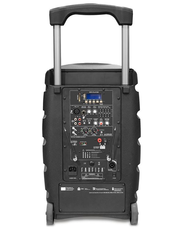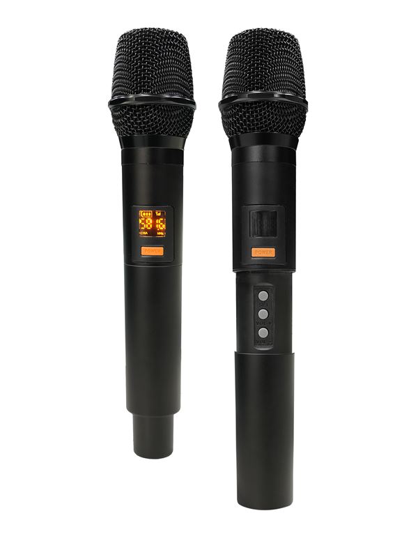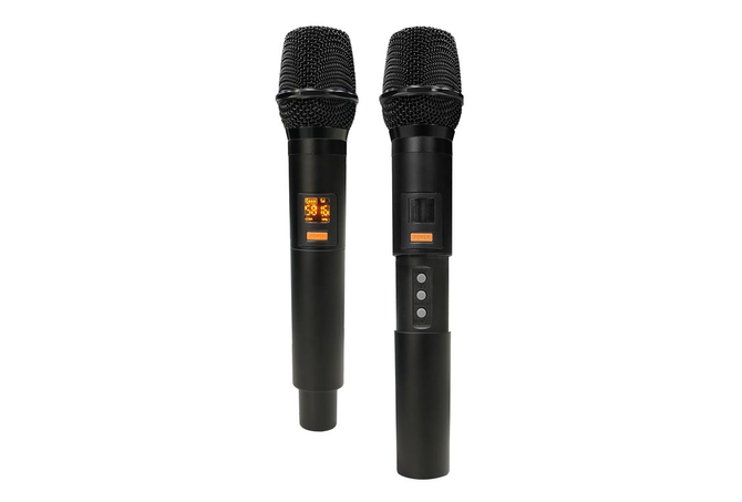 2 ασύρματα UHF μικρόφωνα, 2 υποδοχές για mic και line με ξεχωριστά ρυθμιστικά έντασης και echo εφέ,