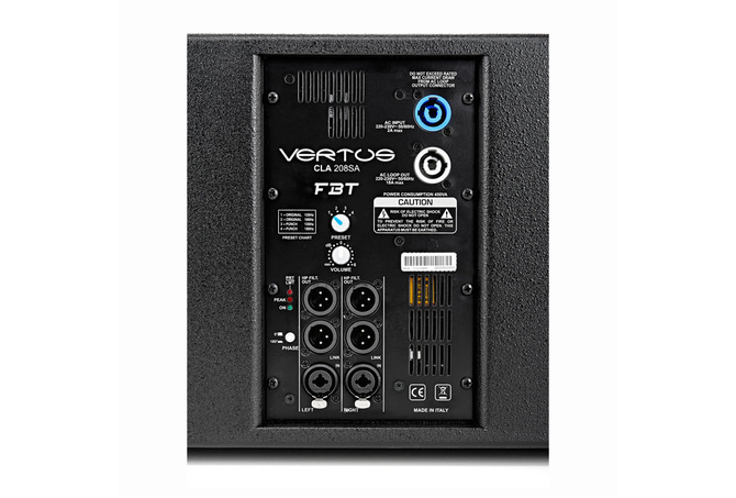 Το FBT CLA208SA είναι ένα ενεργό subwoofer υψηλής απόδοσης με 2x woofer 8”, σχεδιασμένο για να προσφέρει βαθύ και δυναμικό μπάσο, ιδανικά προσαρμοσμένο για live εφαρμογές και εγκαταστάσεις υψηλών απαιτήσεων.