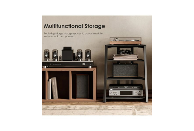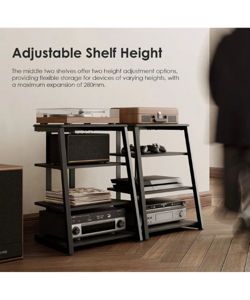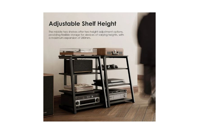 Με μοντέρνα και κομψή εμφάνιση, ιδανική για γωνίες ή για τον υπόλοιπο χώρο, όχι μόνο ως πολυλειτουργική λύση αποθήκευσης στο home cinema σας, αλλά και ως πλαϊνό ράφι στο γραφείο, το σαλόνι ή την κρεβατοκάμαρά σας.ΒΕΛΤΙΣΤΟΠΟΙΗΣΤΕ ΤΟΝ ΧΩΡΟ ΣΑΣΚαινοτόμα Ρυθμιζόμενα Ράφια 4 ΕπιπέδωνΜε διαστάσεις 23,8” x 20,3” x 30,7” (Π*Β*Υ), αυτό το έπιπλο 4 επιπέδων έχει σχεδιαστεί προσεκτικά με δύο ελεύθερα ρυθμιζόμενα ράφια από laminate, προσφέροντας έως και 1,7” ρύθμιση ύψους στο δεύτερο και τρίτο επίπεδο. Αυτό εξασφαλίζει μια προσαρμοσμένη εφαρμογή για τον οπτικοακουστικό σας εξοπλισμό. Επιπλέον, το πάνω ράφι παρέχει αξιόπιστη στήριξη για ορισμένες τηλεοράσεις LCD / LED με επίπεδη οθόνη.ΑΠΟΔΟΤΙΚΗ ΟΡΓΑΝΩΣΗΜε λειτουργικότητα Διαχείρισης Καλωδίων, το πίσω μέρος της βάσης είναι έξυπνα κοίλο για να κρύβει τα καλώδιά σας. Επιπλέον, έχουμε συμπεριλάβει προσεκτικά έναν ειδικό χώρο στο πίσω μέρος για την πλακέτα τροφοδοσίας σας, βελτιώνοντας τη συνολική οργάνωση της αποθήκευσης.ΕΥΚΟΛΗ ΕΓΚΑΤΑΣΤΑΣΗΔιαθέτει απλό σχεδιασμό που είναι εύκολος στην εγκατάσταση και τη χρήση, επιτρέποντάς σας να ολοκληρώσετε την εγκατάσταση εντός 30 λεπτών χωρίς την ανάγκη επαγγελματικών εργαλείων ή δεξιοτήτων, απλώς ακολουθήστε τις λεπτομερείς οδηγίες βήμα προς βήμα.