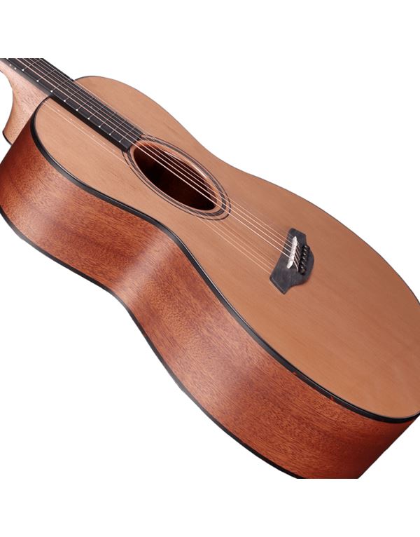 Η ακουστική κιθάρα Furch Blue Plus CM διαθέτει πάνω καπάκι κατασκευασμένο από υψηλής ποιότητας δυτικό κόκκινο κέδρο και πίσω και πλαϊνά από υψηλής ποιότητας αφρικανικό μαόνι.