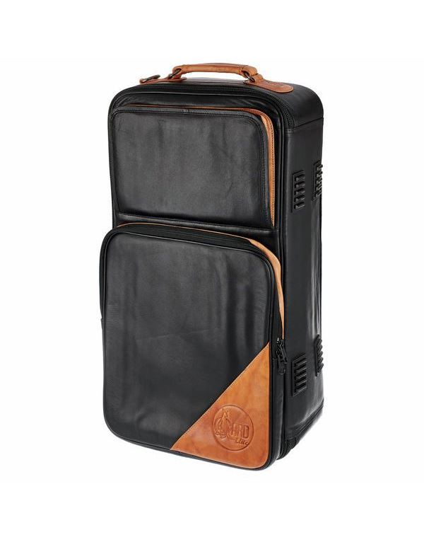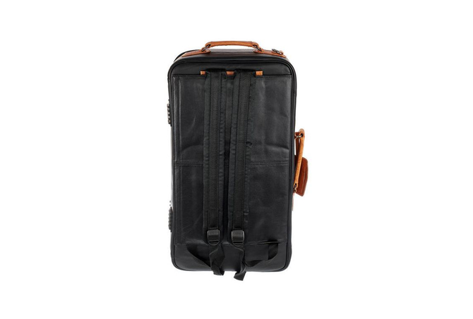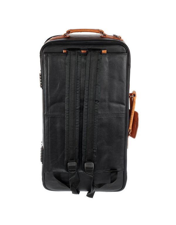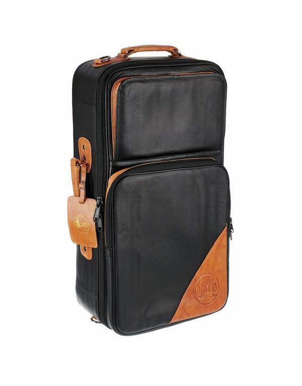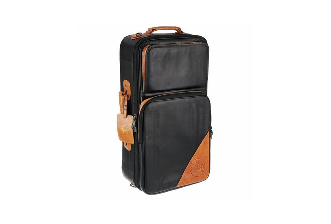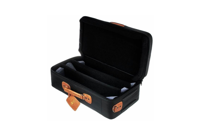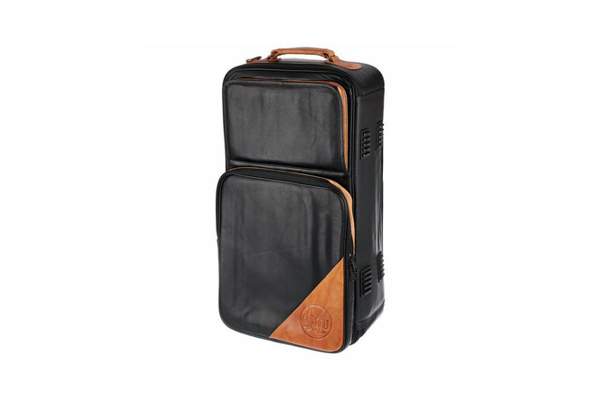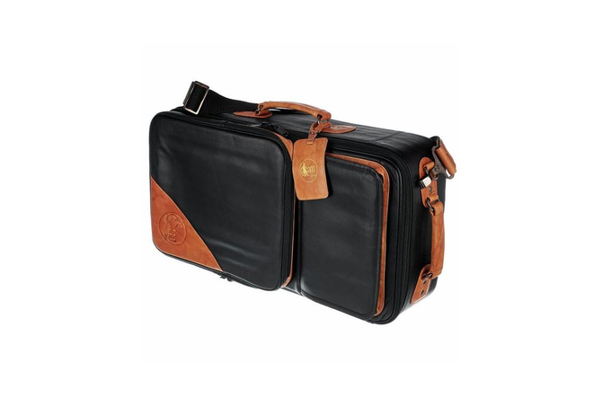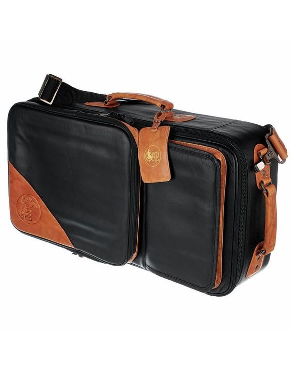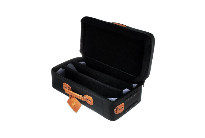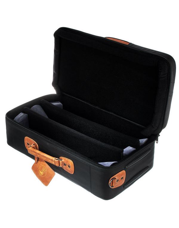 Ευρύχωρη και στιβαρή θήκη για τρείς τρομπέτες κατασκευασμένη από καθαρό 100% γνήσιο δέρμα με μεγάλη τσέπη για αξεσουάρ.