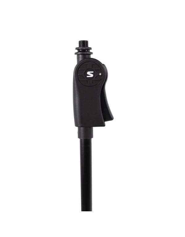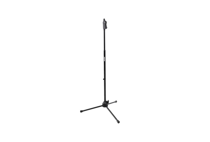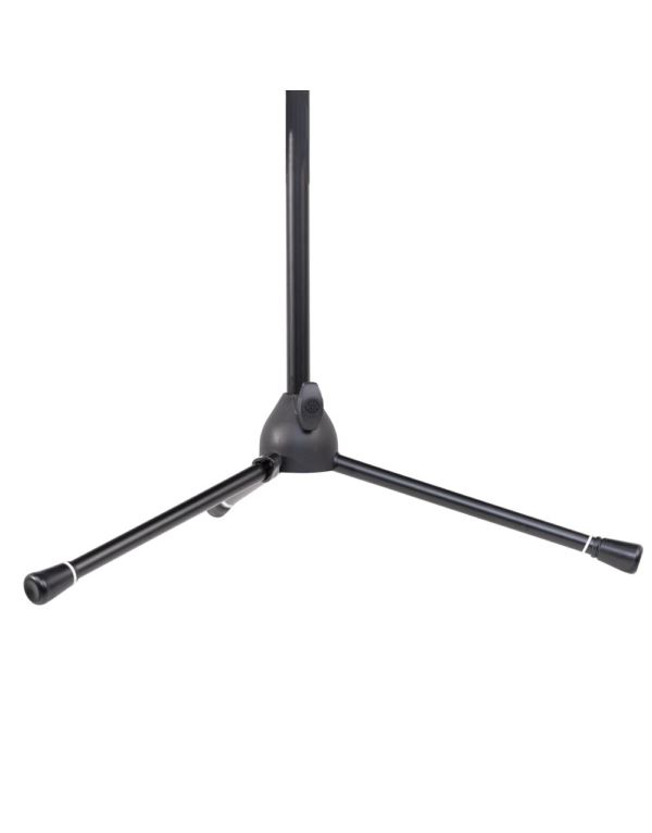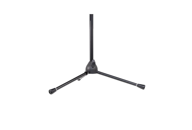 Μεταλλική τρίποδη επιδαπέδια βάση για μικρόφωνο, με τηλεσκοπικό οριζόντιο βραχίονα και λαβή με συμπλέκτη για τη ρύθμιση ύψους με ένα χέρι