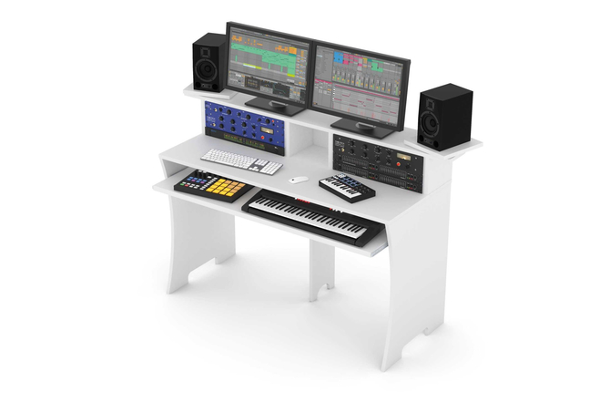 Εξαιρετικά στιβαρή και εργονομική κατασκευή, εξάγωνο συρτάρι για πληκτρολόγια, δεύτερο επίπεδο για μεγάλες οθόνες, Ράφια 2 x 4 RU 19, χώρος για CD, DVD, βιβλία κλπ. Με κοιλότητες για καθοδήγηση καλωδίων.Υλικό: MDF ξύλοΔιαστάσεις: 1520 x 958 x 551 mmΔιαστάσεις με περιστροφικά τραπέζια: 1560 x 980 x 580 mmΒάρος: 39,5 kgΜέγιστο φορτίοMiddle monitor area: 50 kgSingle speaker tray: 10 kgKeyboard tray: 10 kgMain table area: 107 kg