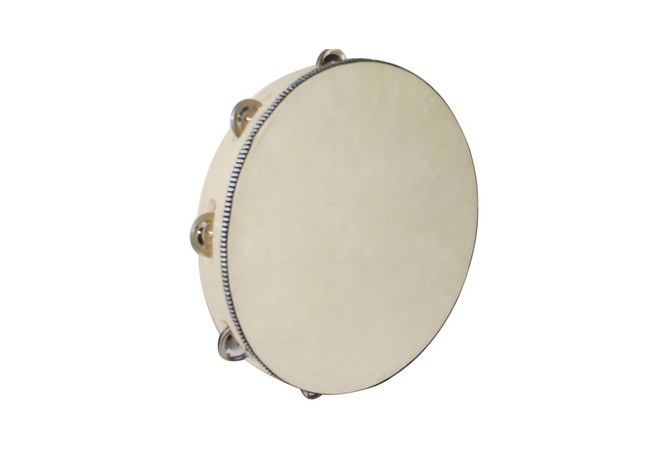 Ταμπουρίνο με τζίλιες, διαμέτρου 12" (30cm) ξύλινο στέλεχος, επεξεργασμένο δέρμα, 16 τζίλιες από ατσάλι.