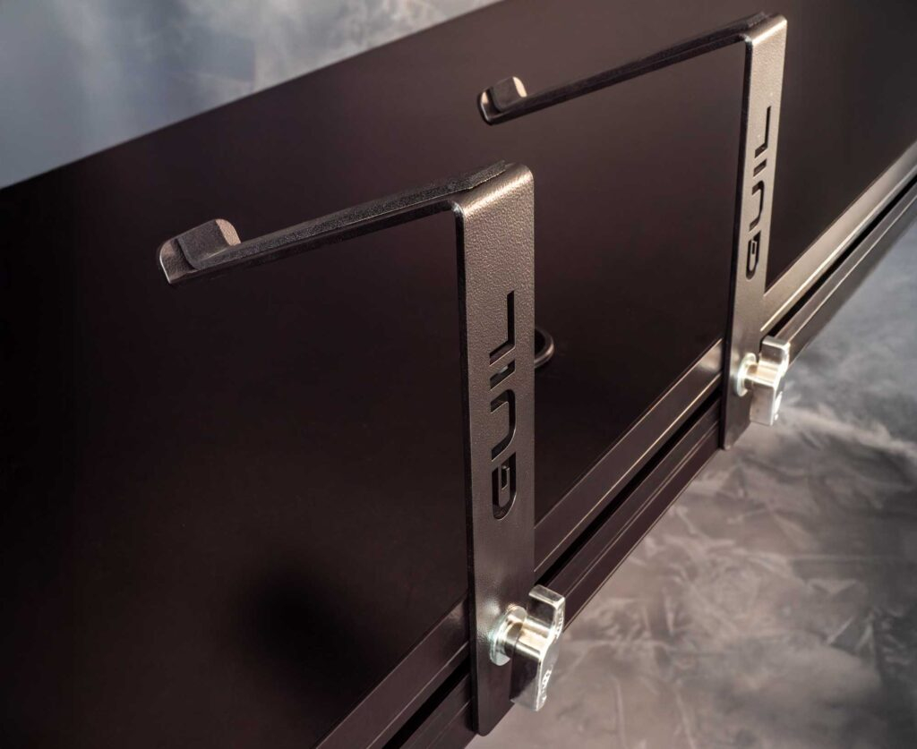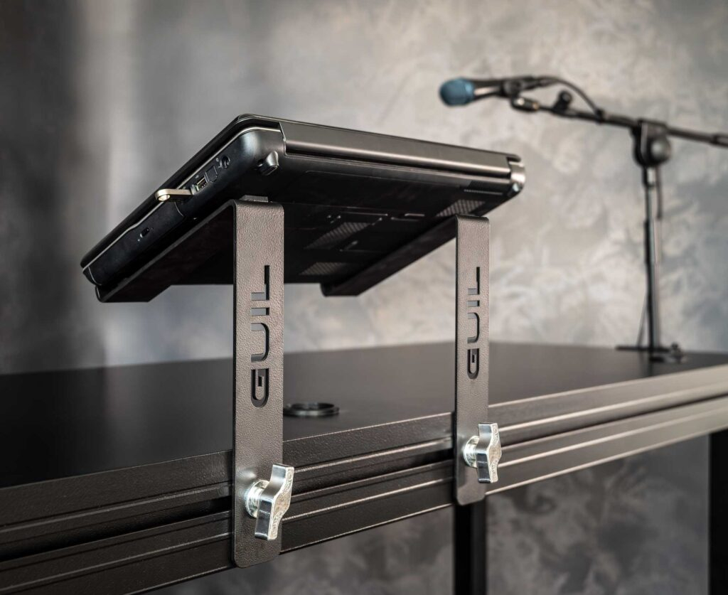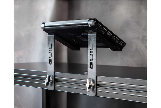 Η GUIL BJ/TM01 είναι μία πολυχρηστική βάση-ράφι για διάφορες συσκευές (laptops, tablets κ.ά.), που προσφέρει επιπλέον χώρο εργασίας στον χρήστη. Σχεδιασμένη για να τοποθετείται σε όλα τα μοντέλα και μεγέθη τραπεζιών DJ και πλατφορμών GUIL, προσαρμοζόμενη εύκολα στη πολυλειτουργική ράγα τους.