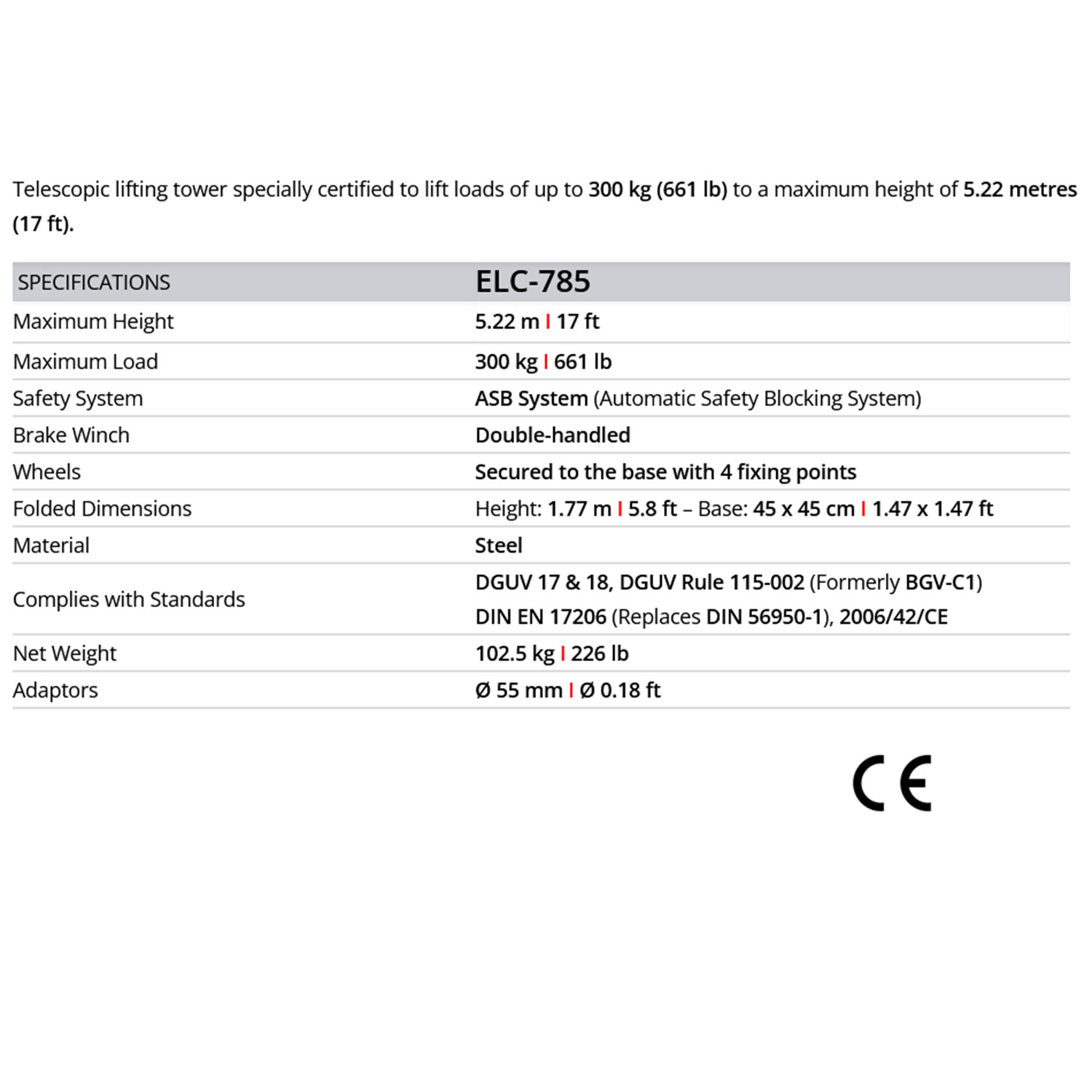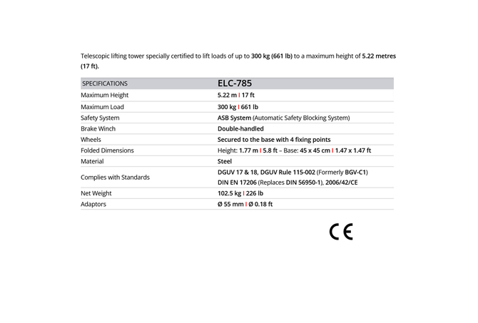 GUIL ELC785 | Τηλεσκοπικός Πύργος Ανύψωσης 5.22m, 300Kg