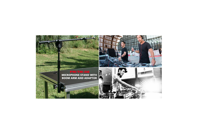 PM/TM-02 : Tabletop microphone stand with boom arm and adaptor to fit to DJ & Sound Engineer Platforms
