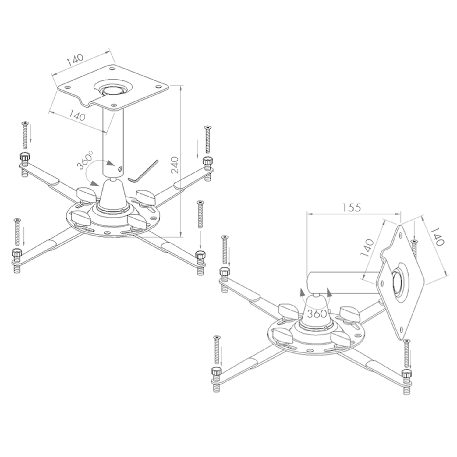 Ρυθμιζόμενη Βάση που Υποστηρίζει όλους τους Προτζέκτορες με Πρότυπο Τοποθέτησης VESA