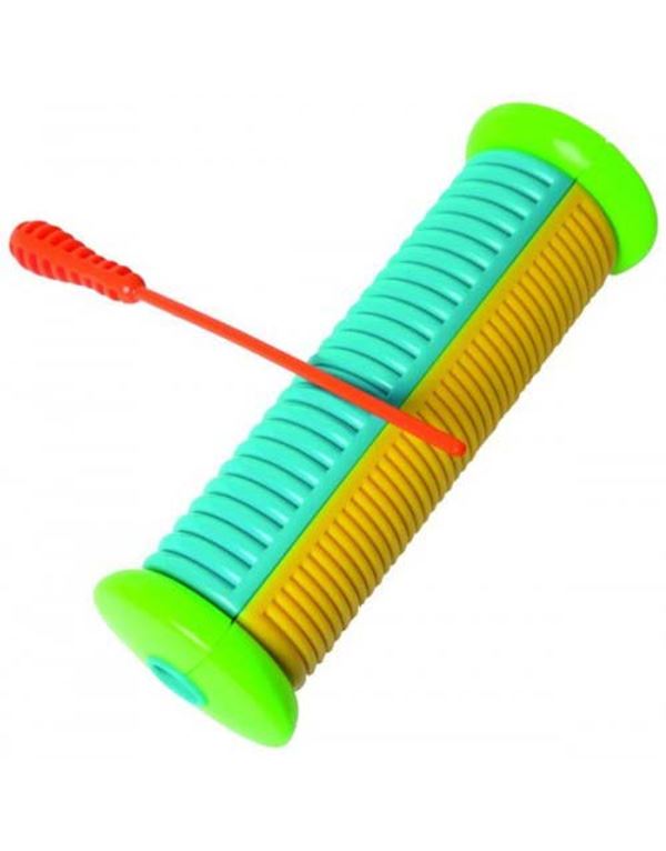 Γκουίρο και Σέικερ ταυτόχρονα, κατασκευή από υψηλής ποιότητας πλαστικό, σχεδιασμένο για παιδιά ηλικίας 3+. Περιλαμβάνεται πλαστική μπαγκέτα-scraper.
