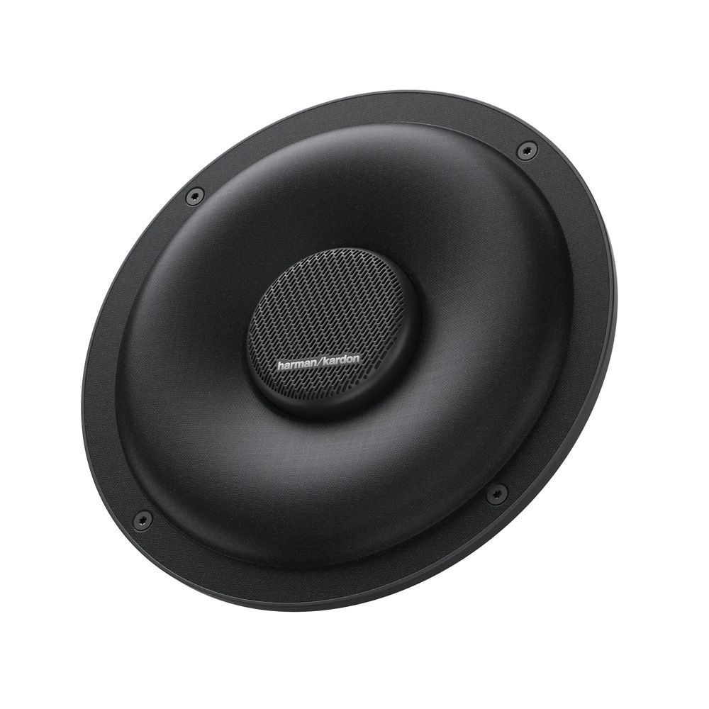 Harman/Kardon’s Clean Aesthetic DesignFlow 80 keeps with Harman/Kardon’s clean aesthetic, the silhouette of the speaker is a simple circle. The fabric-wrapped grill, reminiscent of other Harman/Kardon speakers, protects the cone from fallen debris under the seat.The front magnet creates the illusion of pushing the cloth grill into the speaker. The magnet’s metal grill uses the iconic Harman/Kardon 60-degree slash pattern, based on the “/” in Harman/Kardon, which provides venting for peak performance.