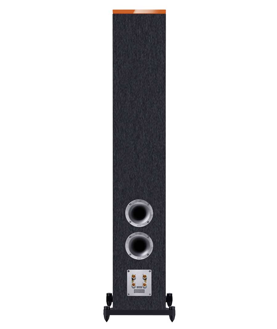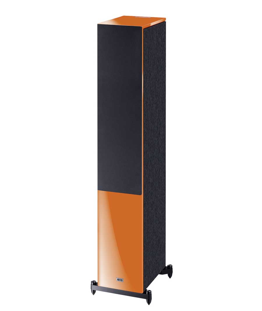 Το Heco Aurora 700 Colors είναι ένα πλήρως εξελιγμένο ηχείο δαπέδου με τεχνολογία 3 δρόμων. Διατίθεται σε τέσσερα αποκλειστικά χρώματα και συγκεκριμένα: Cranberry Red, Speed Green, Sunrise Orange και Cool Grey. Το σώμα είναι φινιρισμένο σε μεταξωτό-ματ ανθρακί, ενώ το διάφραγμα και το επάνω πάνελ παρουσιάζουν γυαλιστερό φινίρισμα στο αντίστοιχο χρώμα. Η υφασμάτινη μπροστινή γρίλια είναι μαγνητικά προσαρτημένη χωρίς ορατές βάσεις.Heco Aurora 700 – πλήρως ανεπτυγμένο, αλλά λεπτόΜε ύψος 1100 mm, πλάτος 195 mm και βάθος 325 mm, προσφέρει τέλειες αναλογίες, καθώς το tweeter Fluktus και ο οδηγός midrange είναι τέλεια τοποθετημένοι στο ύψος του αυτιού. Το λεπτό περίβλημα, από την άλλη πλευρά, δεν είναι ούτε τόσο φαρδύ όσο ένα φύλλο χαρτιού Α4.Δύο woofer 170 χλστ. στο περίβλημα αντανακλαστικού μπάσων με ακριβή συντονισμό εξασφαλίζουν εντυπωσιακή απόκριση βαθιών μπάσων που φτάνει στα 25 Hz. Οι κώνοι midrange και woofer είναι κατασκευασμένοι από χαρτί κραφτ. Το μείγμα υλικών μακριών ινών από χαρτί και υφαντικές ίνες έχει ως αποτέλεσμα έναν εξαιρετικά στιβαρό κώνο που είναι ταυτόχρονα ελαφρύς.Χαρακτηριστικά: