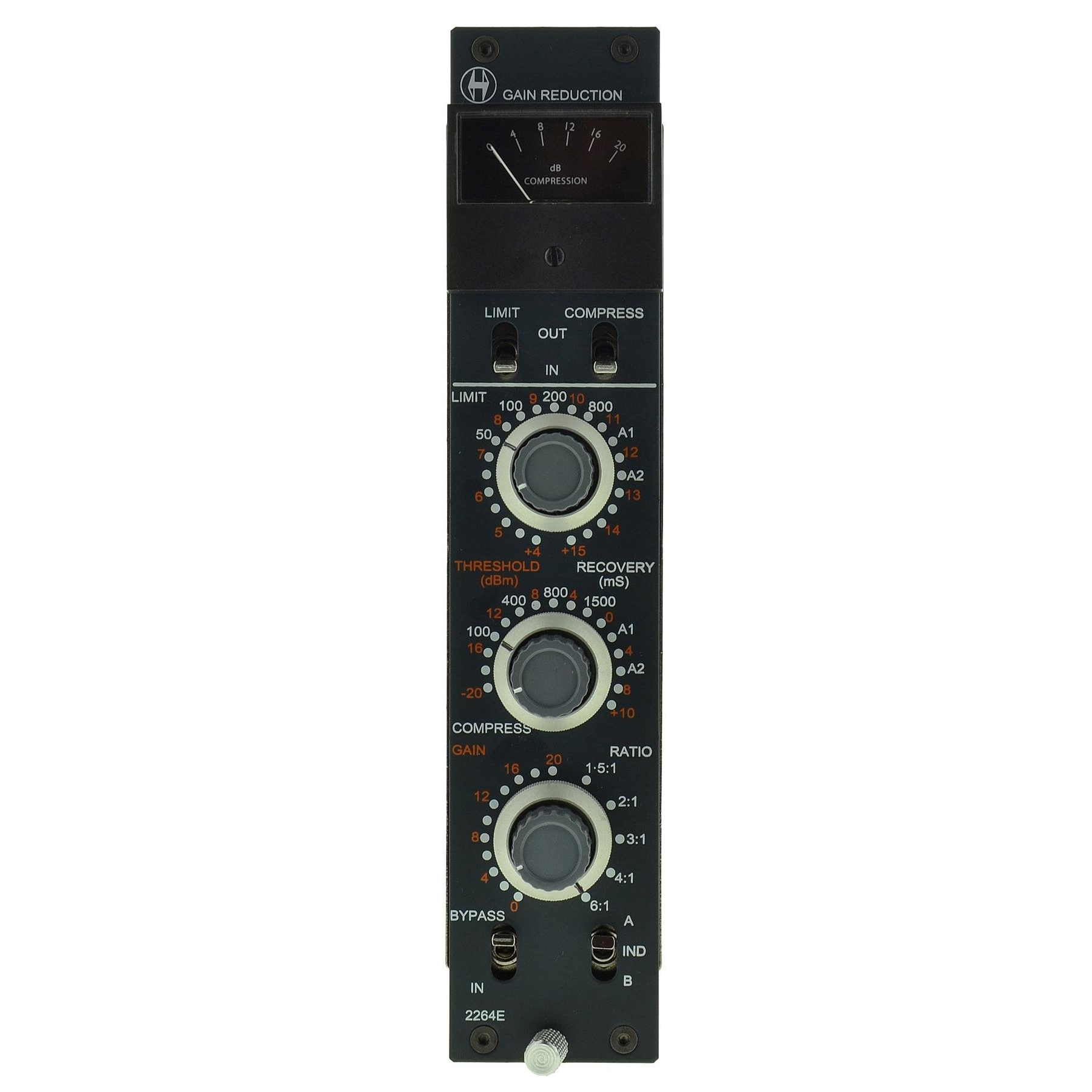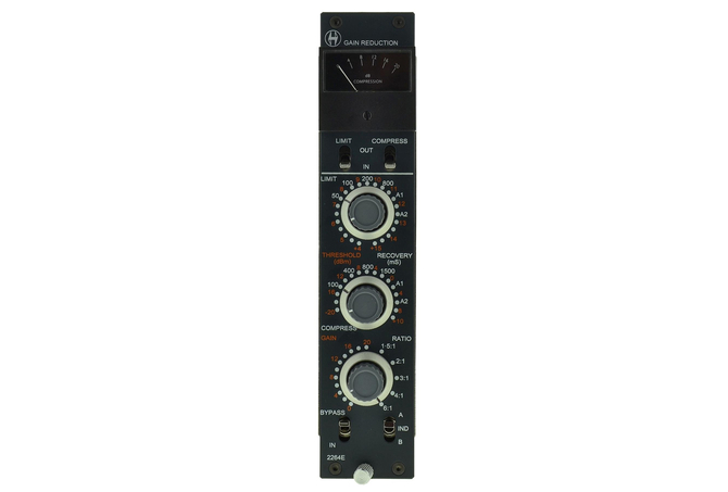 Ο compressor/limiter Heritage Audio 2264E είναι μια μονάδα δυναμικής που βασίζεται στη γέφυρα με δίοδο (diode bridge) και έχει σχεδιαστεί για να χρησιμοποιηθεί στη διαδικασία αποκατάστασης των κονσολών μίξης ήχου vintage 80 Series.Μπορεί επίσης να εγκατασταθεί στο Heritage Audio Frame 8 και στο Rack 2, όπου προβλέπεται η σύνδεση έως 8 μονάδων σε 2 διαφορετικά buses. Είναι Class A, συμπεριλαμβανομένου του ίδιου σταδίου εξόδου που βρίσκεται στο HA1073, το οποίο αντιδρά πολύ καλύτερα με τη συμπίεση από τους ενισχυτές κατηγορίας Α/Β. Είναι απόλυτα χειροποίητο και καλωδιωμένο με τον ίδιο τρόπο όπως και τα υπόλοιπα μοντέλα της σειράς Heritage Audio 80 Series. ΧαρακτηριστικάΑντίσταση γραμμής εισόδου: γεφύρωση 10K Ohms, με μετασχηματιστή (balanced και floating)Αντίσταση εξόδου: Λιγότερο από 75 Ohms, με μετασχηματιστής (balanced και floating), για να οδηγήσει φορτίο 600 ohms (εργοστασιακά τερματισμένο)Αρμονική Παραμόρφωση (THD): Λιγότερο από 0,025% σε 1 Khz, λιγότερο από 0,05% στα 100Hz (χωρίς gain reduction)Maximum Gain: 20dBΜέγιστη κατανάλωση ενέργειας: Λιγότερο από 120 mA @ + 24VDC