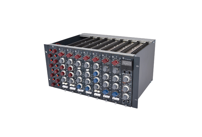 Ένα 5U ρακ που μπορεί να πάρει μέχρι και οκτώ μονάδες της σειράς 80. Διαθέτει διακόπτες phantom power και ποντεσιόμετρα για κάθε μια από τις οκτώ μονάδες που μπορεί να πάρει.Το Frame 8 είναι χειροποίητο στην ΕΕ που χρησιμοποιεί τα ίδια ακριβή μηχανικά εξαρτήματα ISEP που χρησιμοποιούνται στις κονσόλες Series 80. Αλουμινένιες ράγες, οδηγοί κλπ. Αυτό θα εξασφαλίσει ότι τα παλαιότερα vintage modules σας, καθώς και οποιαδήποτε από τα τρέχοντα, θα ταιριάζουν σαν γάντι. Κάθε κανάλι έχει το δικό του έλεγχο εξόδου καθώς και φωτιζόμενο διακόπτη phantom. Επίσης, το Frame 8 είναι έτοιμο για τη σύνδεση μέχρι 8 2264 συμπιεστών σε 2 busses, A ή BΤο πίσω μέρος διαθέτει υποδοχές XLR Neutrik με επιχρυσωμένο XLR για είσοδο Mic και Line, καθώς και εξόδους. Η εξωτερική μονάδα τροφοδοσίας συνδέεται μέσω XLRs με 4 ακίδες Neutrik. Είναι διαμορφωμένο για 220-240v ή 110v. Η τροφοδοσία ρεύματος περιλαμβάνεται.