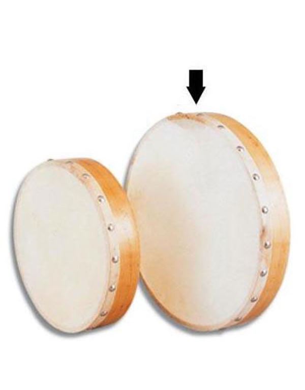 Ταμπουρίνο μη χορδιζόμενο, με διάμετρο 10" ξύλινο στέλεχος και επεξεργασμένο δέρμα. Περιλαμβάνεται ξύλινο κοπανάκι.
