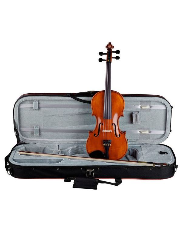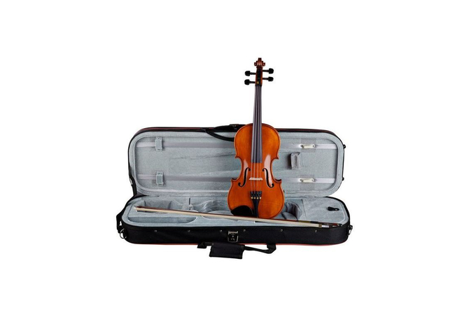 Περιλαμβάνονται: Θήκη σε ορθογώνιο σχήμα με αποσπώμενους ιμάντες πλάτης, ρετσίνι Hidersine και δοξάρι οκταγωνικό με ebony frog.