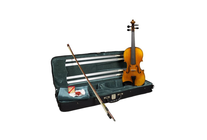 Περιλαμβάνονται: Θήκη σε ορθογώνιο σχήμα με αποσπώμενους ιμάντες πλάτης, ρετσίνι Hidersine και δοξάρι.