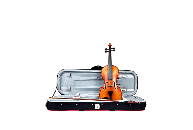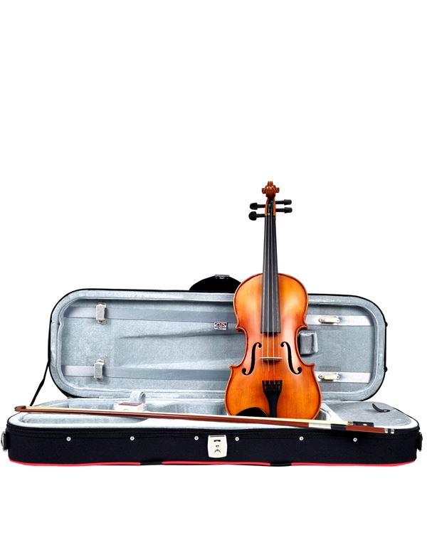 Περιλαμβάνονται: Θήκη σε ορθογώνιο σχήμα με αποσπώμενους ιμάντες πλάτης, ρετσίνι Hidersine και δοξάρι οκταγωνικό από Brasilwood .
