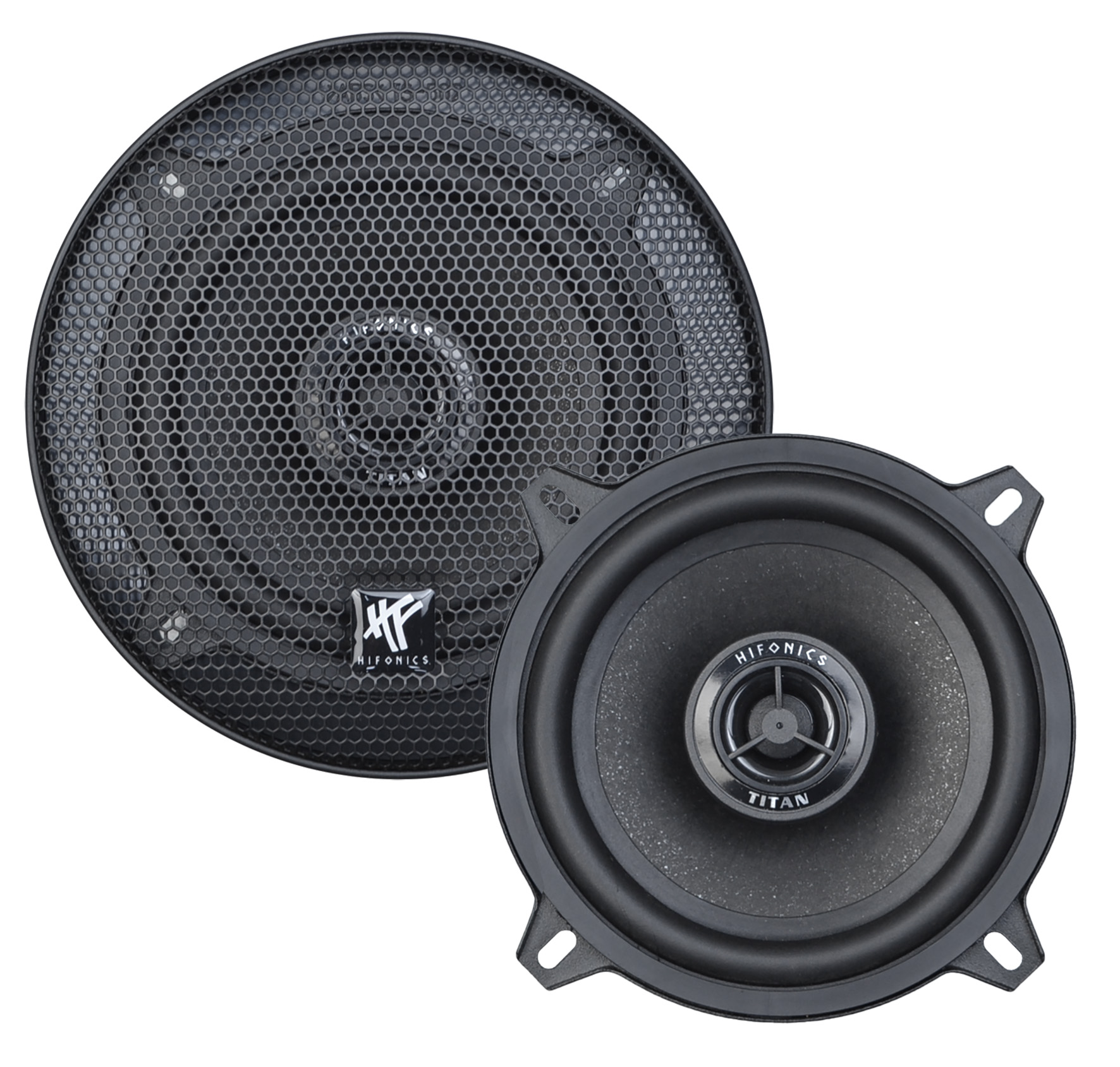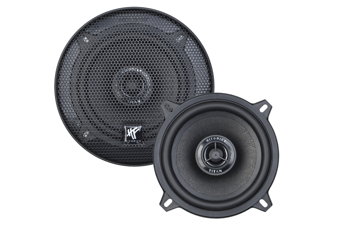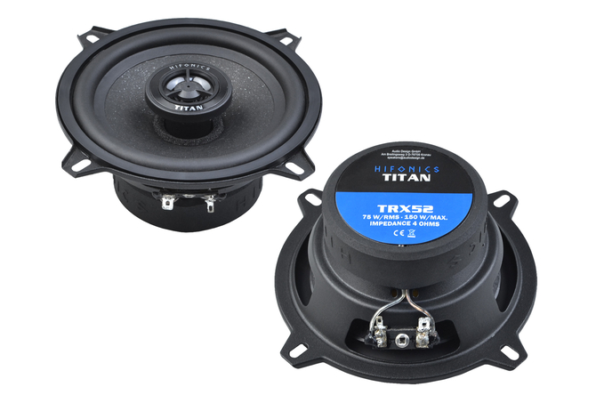 TITAN coaxial speakers with powerful sound have a very long tradition in the HiFonics loudspeaker range. The very good sound quality and durability, which also astonishes with an excellent price-performance ratio, have always been particularly valued. But standing still is not an option in the world of sound technology either. That is why the HiFonics developers have given the models a complete makeover and combined them with innovative materials. The result is a sound that not only retains the audiophile charm of the Titan loudspeakers, but surpasses it in many details. The newly used composite membranes made of a MICA/paper mixture, which have proven to be superior in terms of sound to the previous membranes in many listening tests, make a significant contribution to improving the sound of the new TITAN TRX loudspeakers. Thanks to the ultra-light, very stable and excellently dampening MICA membrane composition, bass and mid frequencies are always reproduced precisely and powerfully and distortion is minimized. The sound always remains neutral, clear and balanced. This means that every piece of music is reproduced in its full detail and dynamics. Specifications 13 cm (5.25″) 2-Way Coaxial Speakers 75 W/RMS, 150 W/MAX, 4 Ω Frequency Range 65 – 22000 Hz 13 mm Mylar Neodymium Tweeters Protection Grille Ø 115 mm, ‡ 54 mm Downloads Owner’s Manual
