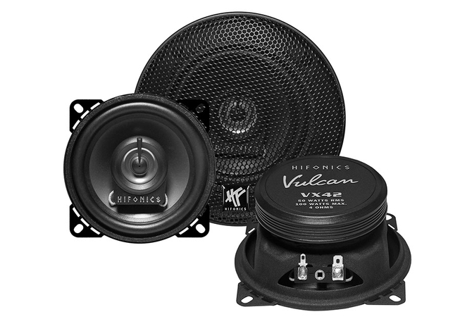 10 cm (4") Coaxial Speakers50 W/RMS, 100 W/MAX, 4 ΩFrequency Range 72 - 22000 Hz13 mm Mylar TweeterØ 95 mm, ‡ 47 mm