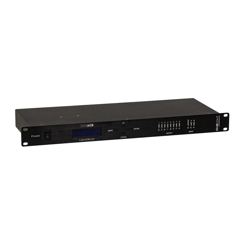 Το Involight DMXAC8 είναι ένας ArtNet node που μπορεί να μετατρέπει έως και οκτώ universes από ArtNet σε DMX 512 ή αντίστροφα. Μέσω καλωδίου CAT5 μπορούν να μεταδοθούν έως 4096 κανάλια. Η ταχύτητα μετάδοσης δεδομένων είναι 10/100 MBit. Όλες οι ρυθμίσεις γίνονται εύκολα μέσω του μενού στην οθόνη χρησιμοποιώντας τα κουμπιά στο μπροστινό μέρος της συσκευής. Υποστηρίζεται επίσης λειτουργία splitter.
